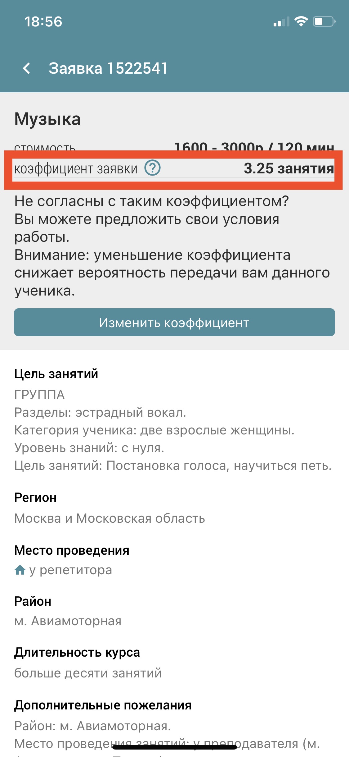 Индивидуальный коэффициент для расчета стоимости заявки всегда отображается в карточке заявки в личном кабинете. Консультант/робот всегда называют его во время звонка.