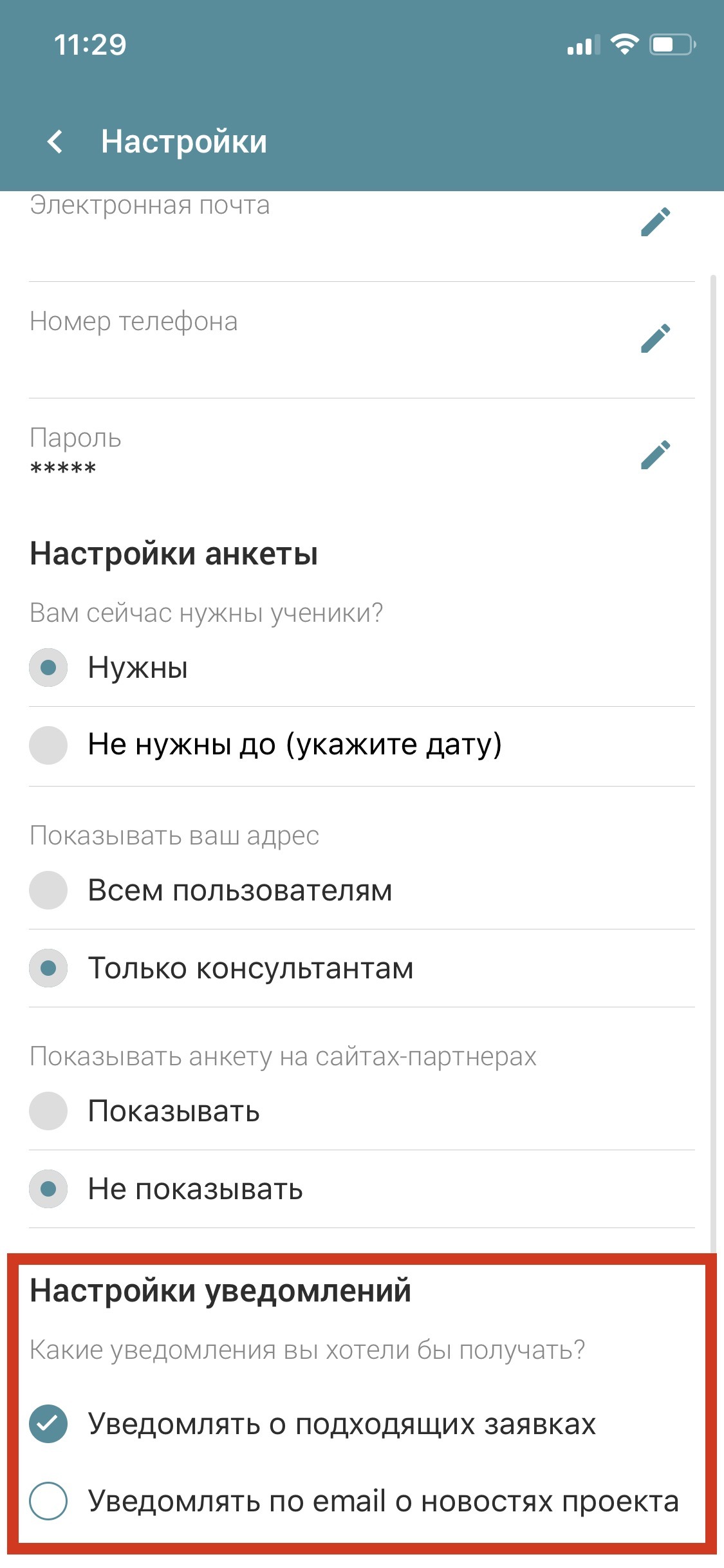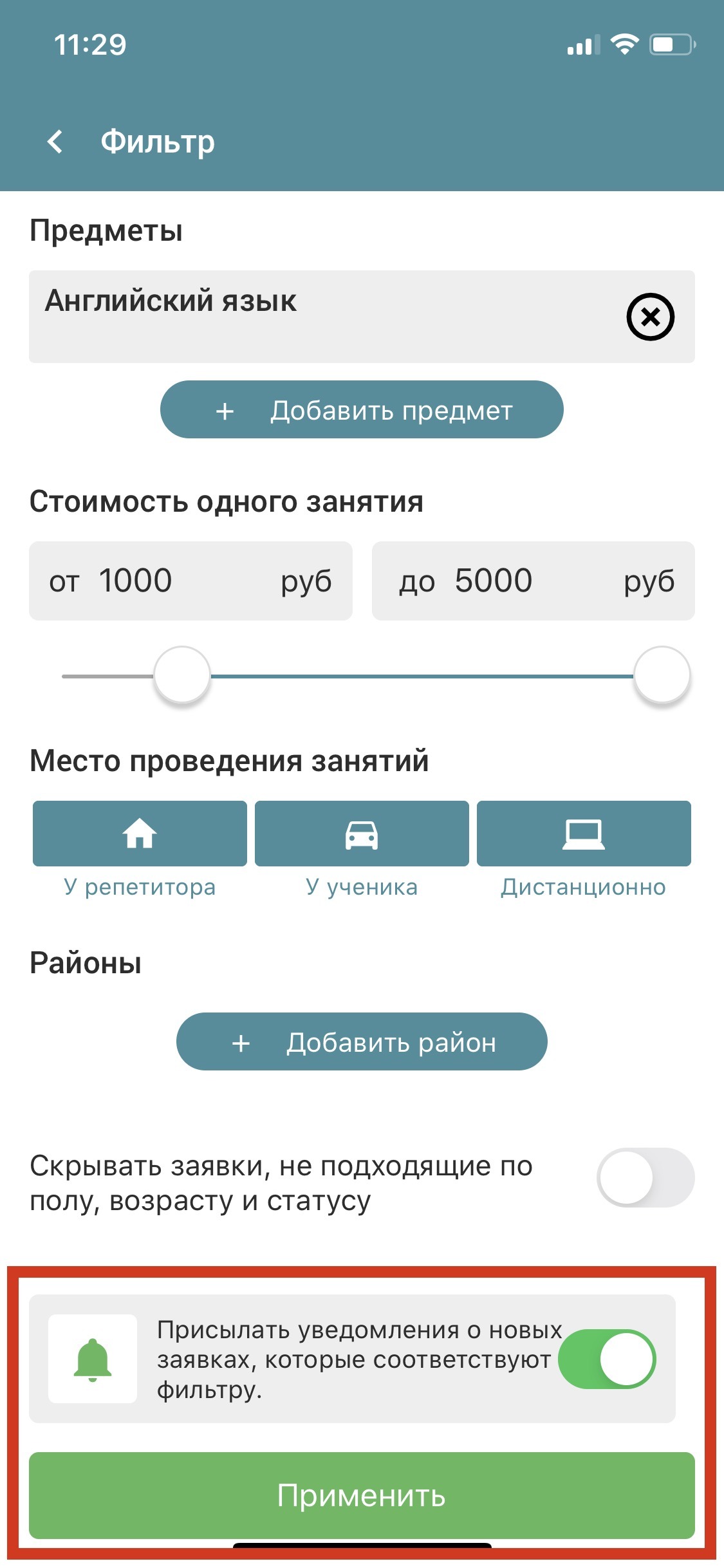 Об этих заявках мы отправляем исключительно push-уведомления (все остальные типы оповещений не рассылаются). Среднее количество репетиторов, которые получают оповещения по каждой заявке, — от 100 до 1000 человек.